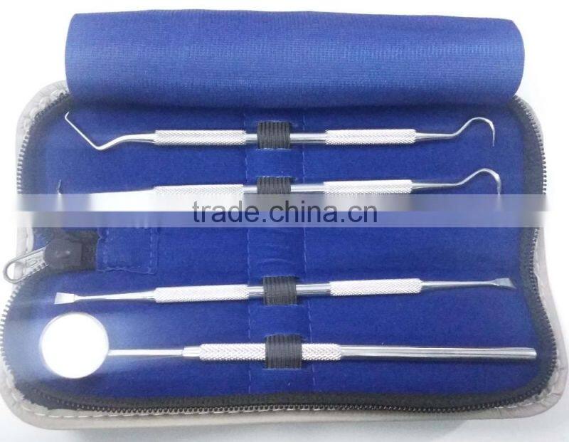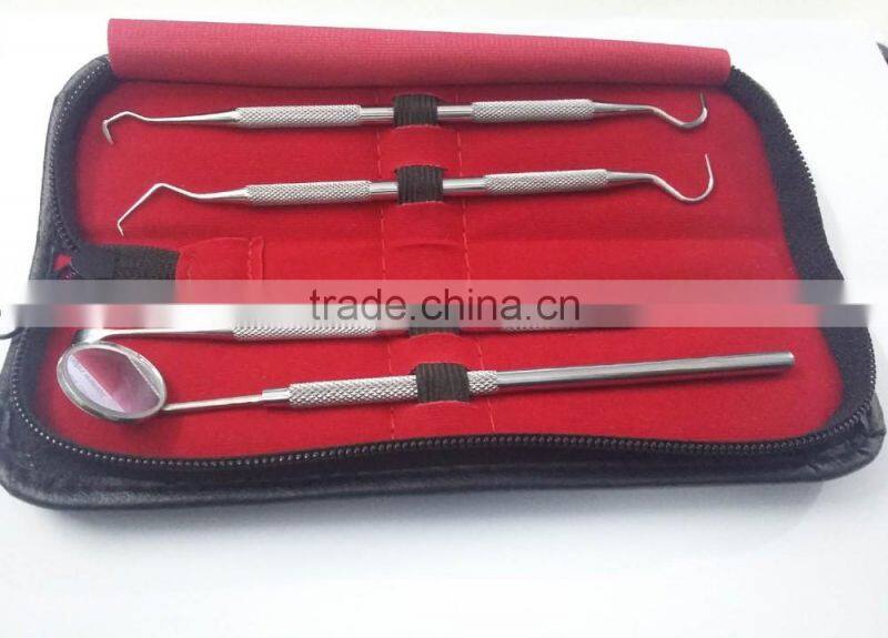COMPLETE DENTAL TOOLS Set; the package contains -1 angled dental mirror -1 Tartar Scraper (double end) - 1 Dental Probe/Dental Pick - 1 Dental Scalar - Plus a FREE Protective, Traveling Case