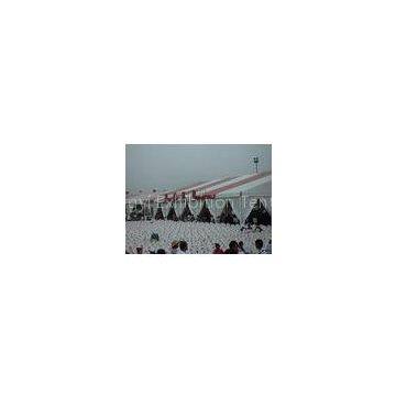 The cover part of event tent is double PVC opaque self-cleaning cloths,which is 750gsm or 850gsm for roof cloth, and 650gsm for sidewall cloth. The PVC cloth is anti UV, waterproof and windproof. And the PVC cloth is flame retardant, which complies to DIN 4102 B1( European standard ). The most common colour for PVC cloth is white.