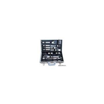 Description:Features: 1) 21pcs set stainless steel BBQ set 2) Including: spatula, fork, tongs, knife, basting brush, grill brush, 1 spare grill brush head, 4 skewers, 8 corn holders and 2 pepper shakers 3) With a high class professional aluminum packing case
