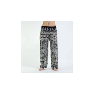soft Tribal Prints Women's Harem Pants in BlackAmazingly soft Tribal Prints Women's Harem Pants in Black.Cotton Rayon Blend.Sizing: One size fits most.Approx. Measurements:● Waist: 24" to 38"● Hips: up to 44"● Inseam: 31"● Total length: 42"