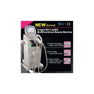 Meizi Newest 3 in 1 Elight ( 5 filters ) RF ( 3 tips ) ND YAG Laser ( 1064nm and 532 nm ) Hair Remove Skin rejuveantion Wrinkly Remove Tattoo remove machine Hot selling