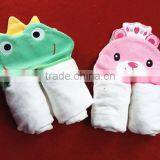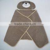 2016HOT SALE Lovely Custom Animal Shape Coral Fleece Baby Hooded Bath Towel