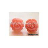 12-13mm Pink Carved Flower Shaped Natural Coral Earrings