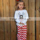 Hot Sale Reindeer Embroidery Wholesale Girls Top and Pant Sets