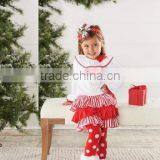 Hot Sale Santa Claus Embroidery Ruffle Cotton Girls Clothing Sets