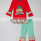 Fashion Design Stripe Ruffle Christmas Kids Boutique Clothes