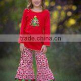 Top Selling Christmas Trees Embroidery Kids Fall Boutique Outfit
