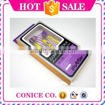 wholesale bicolor noodle cable in-ear earphone with volume control with mic