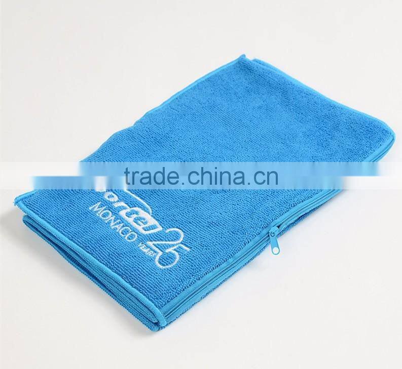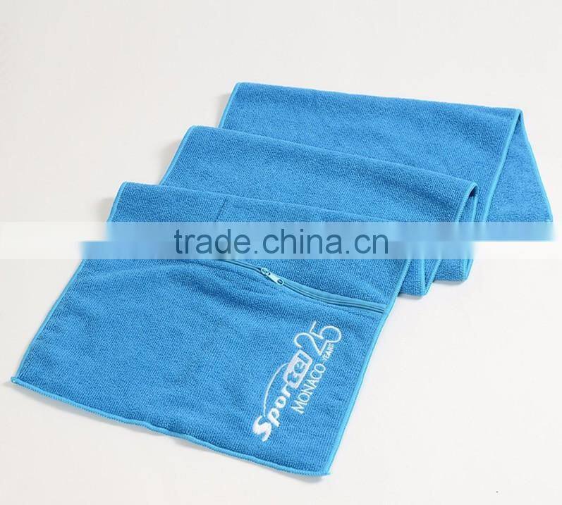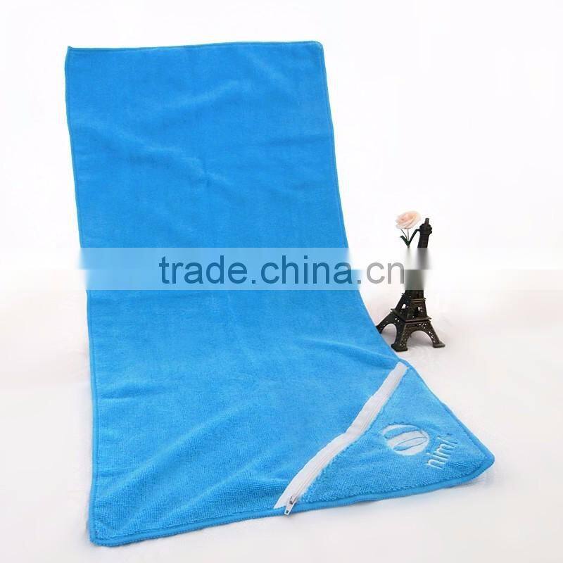 2017 Hot selling microfiber sport towel,gym towel with zipper pocket textile for travel