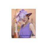 Elegant Purple Handmade Womens Straw Hat With Organza Feather Fascinators