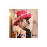 Elegant Red / Green Womens Straw Hat For Party / Wedding , Straw Sun Hat