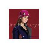 Royal Red Ladies Cloche Wool Fedora Hats With Wool Flower Trimming