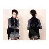 Black Sleeveless Ladies Poncho Sweater With Shawl Collar , Ladies Cardigan Sweaters