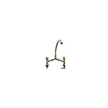 Description:Product Name: Double Handle bridge faucet Place of Origin: China Features: Solid brass or zinc alloy structure Chrome plated Double handle bath mixer Inner packing: 1pc/colour box with cloth bag Outer packing: carton or pallet