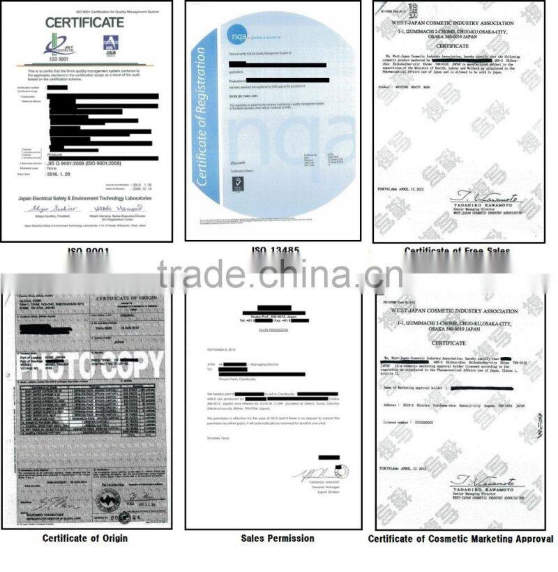 The certificates, which we can get from each manufacturer, are as follows;
