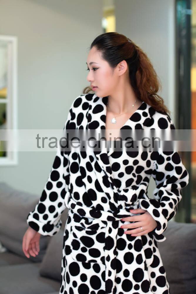 Black and white spot printed coral fleece for Laides Robe       Black and white spot printed coral fleece for Laides Robe         Black and white spot printed coral fleece for Laides Robe