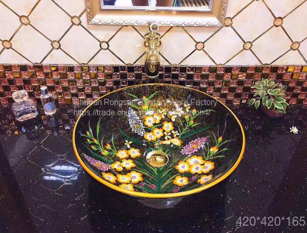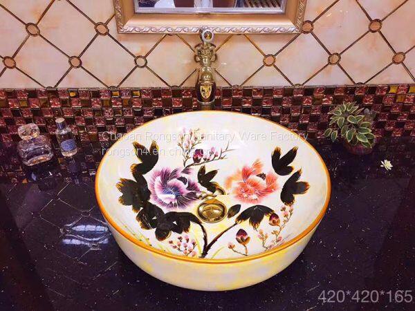Bathroom Ceramic round good sale new decal dark hand paintting art no hole wash basin sink