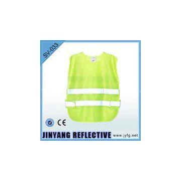 Item:  SV-033Size(cm):80(L)*70(W)Material:100% Polyester 120g/㎡low-elastic yarn with high visibility reflective tape 5cm widthColor: yellowHigh Visibility Low-Elastic Yarn Reflective Security Vest For Children