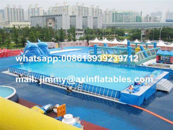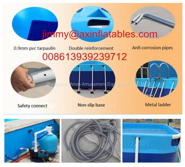 Custom 0.9MM PVC Tarpaulin Inflatable Water Park Equipments,Rectangular Metal Frame Pool
