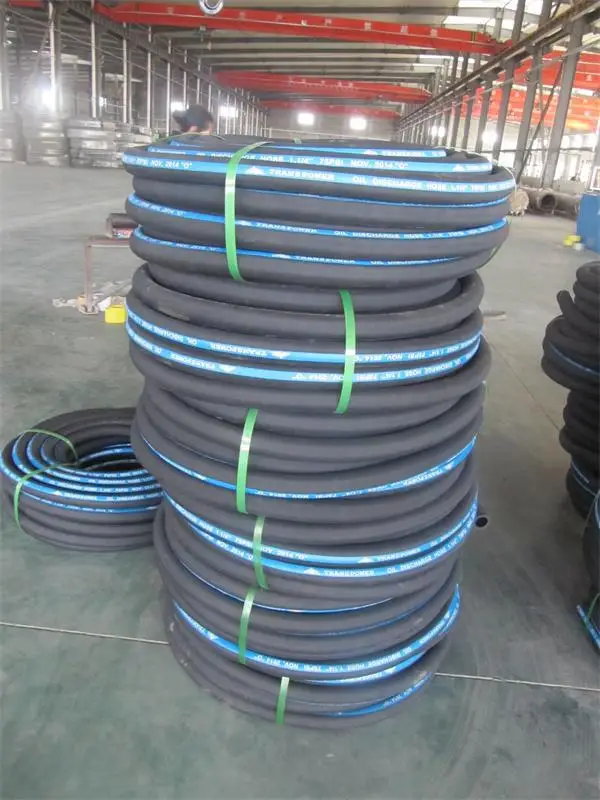 Fuel oil resistant nitrile rubber hose handle petroleum products up to 50; aromatics on marine docks, ships and barges.