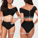 Women's Bikini Sets Off Shoulder Bardot Shirred Sexy Swimwear