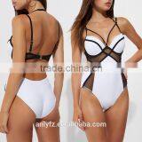 Hot Selling Sexy Women White and Black Strappy Plunge One Piece Swimsuit