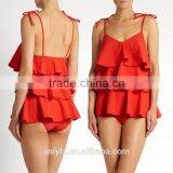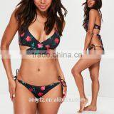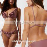 Customized Latest Design 2017 Women Mature Frill Strappy Bikini Set