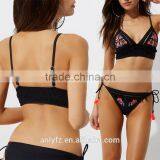 Wholesale Sexy Mature Women Black Floral Embroidered Self-tie Detail Bikini Swimwear