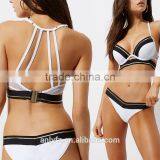 2017 Summer Women Sexy Mesh Detail White Sporty Tipped Strappy Bikini Swimsuit