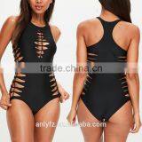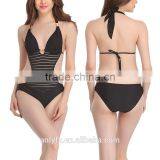 China Factory Custom Sexy Halter Straps Black Swimwear One Piece for Women Swimsuit 2017