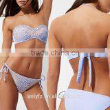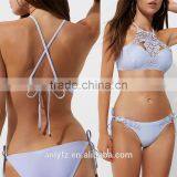 OEM Factory Wholesale Sexy Mature Women Light Blue Lace Bikini Swimwear 2017