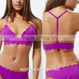 New Fashion Women Bathing Suit Sexy Purple Scallop Detail Bikini Swimwear
