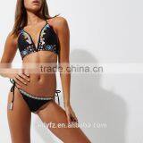 Summer Latest Fashion Sexy Mature Women's Black Print Tie Side Bikini Swimwear