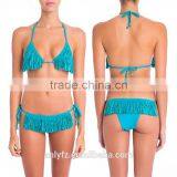 2017 New Sexy Swimwear Women Hot Summer Blue Tassel Halter Bikini Bathing Suit