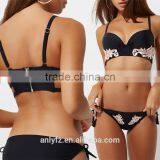 2017 New Summer Sexy Mature Women's Lace Applique Design Black Bikini Swimwear