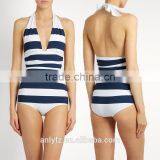 Sexy Women Beach Swimwear Print Stripe Halterneck Design One Piece Swimsuit