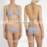 Summer Mature Women Sexy Self-tie Halterneck Stripes Bikini Swimwear