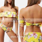 2017 Hot Sale Women Sexy Off Shoulder Ruffle Printing Bikini Swimwear