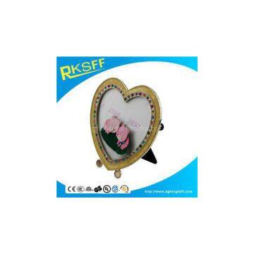 Zinc Alloy Heart-shaped Photo Frame  1)Product Number:RKS-PF014a  2)Material:Zinc Alloy  3)Size:110*110*15 mm  4)Unit weight:113 g  5)Surface treatment:Gold Plating+Epoxy  6)Packing:Box  7)MOQ:500 PCS  8)Shipment:30 days  9)Payment Term:40% T/T before producing,Website: , 60% balance T/T berfore by B/L  10) Sample Policy:1.Ready samples are free but deliver by freight collect                                2.If make samples as your  color and print logo, need sampling cost,it depend on your print logo and quantity.                                3.Print LOGO Sampling time:7days                                4.Sample cost is refund or not depend on your order quantity.If any quetion,just feel free to contact us. ^_^ Our cooperative policy  1. Making the sample until you are satisfied with it.  2. Providing production schedule photos to ensure you know every process.  3. Offering professional one-on-one service and replying your E-mail within three hours  4. Shipment sample for checking before shipment.  5. Priority to get the our latest product information after our cooperation  6. We have already opened Alibaba "credit guarantee", It is safer to place the orders.FAQ  1) Where's your main market?  Our clients around the world in every corner, cause we have 20 years of experience in foreign trade.      2) What are your main products?  Jewelry Box , Photo/Picture Frame , Ashtray , Artware , Kitchenware , Furniture Fittings , Die Casting Products , Zinc alloy and aluminum alloy products etc.      3) Why we should choose you?  Have Disney, HP, Noah and ect large companies inspection factory experience .     4) What is your regular shipment term?  By Express, sea, air, and then we will inform you the tracking number once sent out the goods.  Our products can pass SGS, FDA, LFGB, CE and ROHS, the quality can be reached as your requirement.