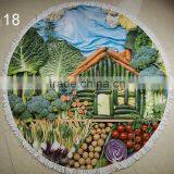 100% Cotton Velour Custom Design Print Round Beach Towel With Tassel Also for Bag