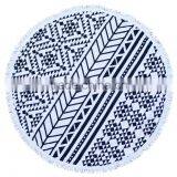 Circle Round Digital Reactive Printed Custom Design New Microfiber Beach Towel With Tassels