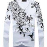 New 100% Cotton Women Long Sleeve Stripe Print Polo-shirt