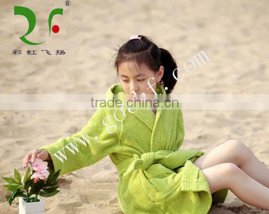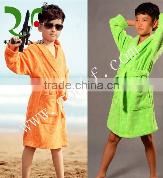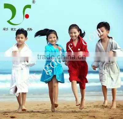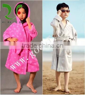 Soft 100% Cotton Pure Color Hooded Bathrobe for Kids
