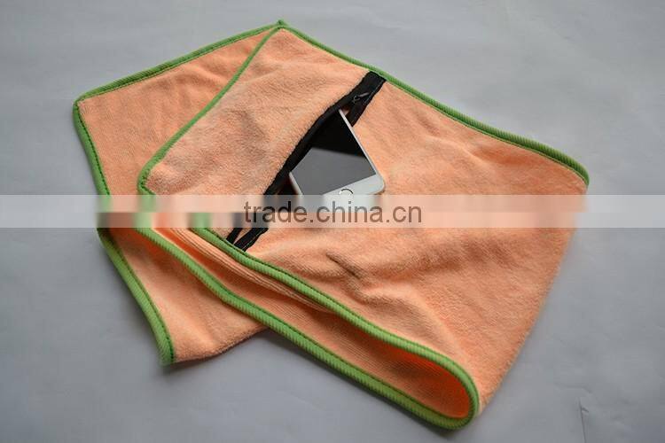 New design microfiber sport towel with zipper pocket