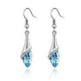 Women Handcrafted Blue Gold Plated Teardrop Drop Earrings Created With Austrian Crystals