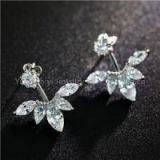 Gold Plated Brass Front Back 2 In 1 Fashion Lady Zircon Leaf Ear Jacket Earrings Back Ear Cuffs Stud Earring