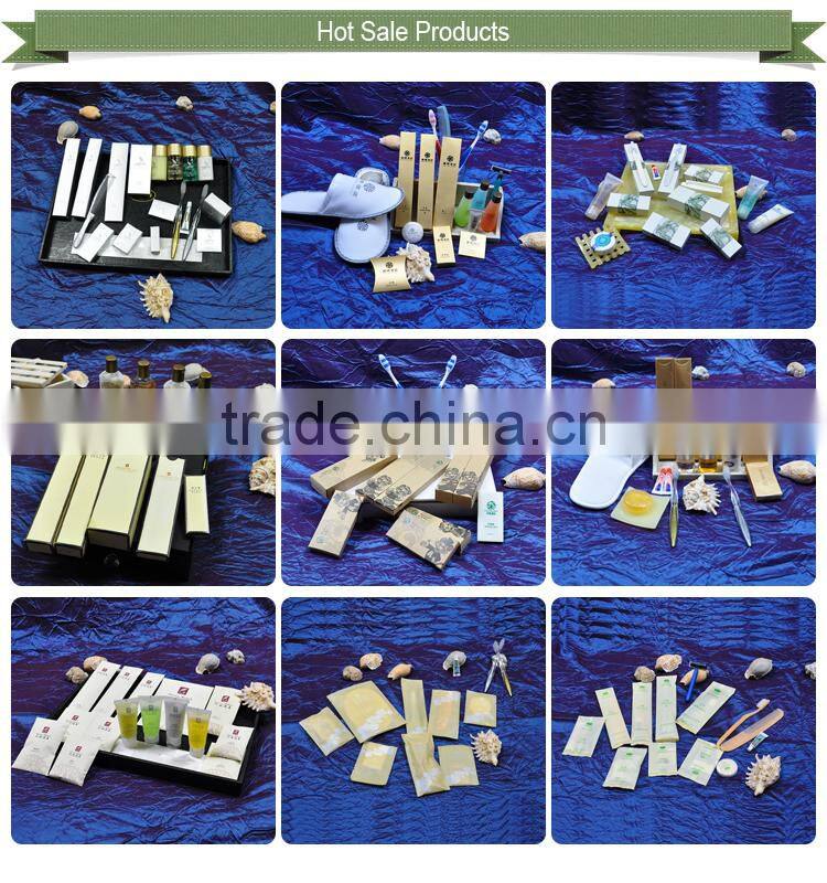 1) Product range includes: slippers, soaps, shampoos, bath gels, shower caps, sewing kits, shaving kits, combs, shoe shines, shoe mitts, cotton buds,cotton balls, sanitary bags, nailfiles, loofah, bathrobes, shoe horns, clothes brushes,carry bags, garbage barrels, pallets, hangers, swizzle sticks, fruit sticks, and many more.