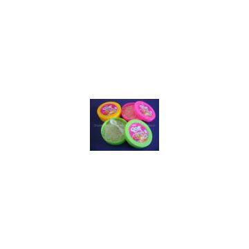 There is powder bubble gum in a round box.