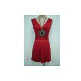 - Autumn New Women's Solid Color Pullover Sleeveless Dress With Deep V-neck and Cinched Waist, Short Length