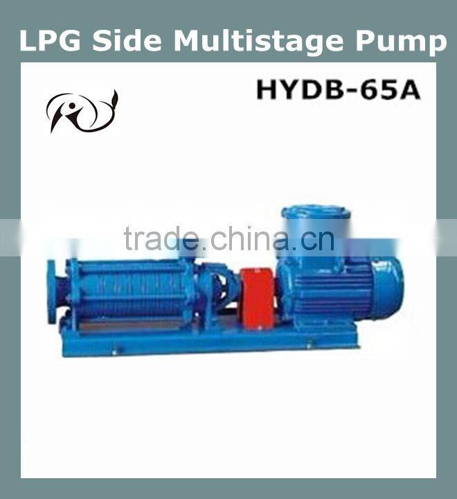 The DB-65 multistage pump, centrifugal and side channel, is designed with 6 stages, having a horizontal configuration, Shaft sealing by mechanical seal without cooling, for handling LPG (liquid gas ), the liquids involving high-differential pressure, low NPSH conditions and aerated liquids up to 50% gas, such as pumping from underground tanks. The use of a pre-compression turbine at the suction end makes it possible to obtain a very small required NPSH, so that this pump can be used under very difficult suction conditions.